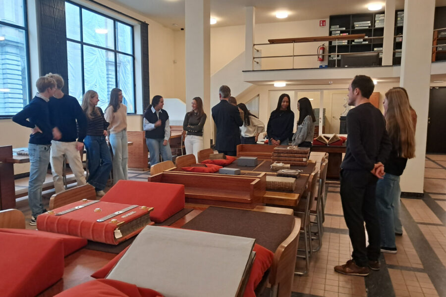 De klassen 5GL, 5LE, 5LM en 5WWl mochten afzakken naar het monument aan het Sint-Pietersplein om manuscripten onder de loep te nemen. Niemand minder dan professor Latijnse taal en literatuur Wim Verbaal (UGent) stond hen te woord.
