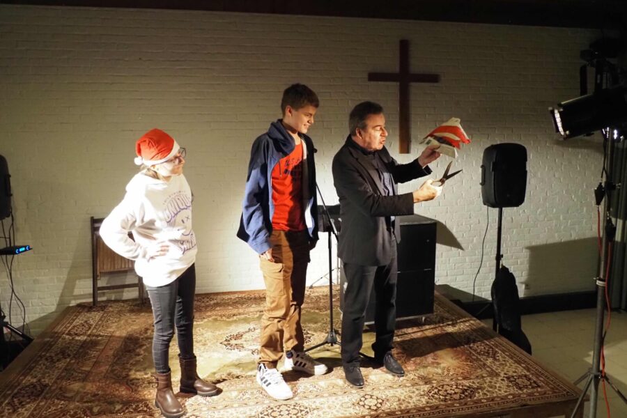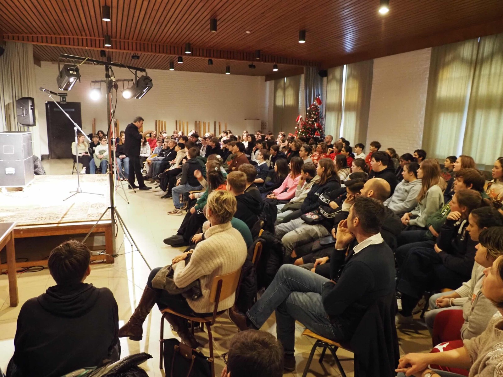 ’s Morgens werd er gestart met een stemmige kerstbezinning . Een mooi kerstspel en een fantastisch koor. ’s Middags kregen alle leerlingen en leerkrachten een kerstmaaltijd, gratis aangeboden door de dames van de Lions Ascot Waregem. In de namiddag genoten we show door goochelaar Koen Bossuyt met een super enthousiast publiek. Zalig kerstfeest aan iedereen !